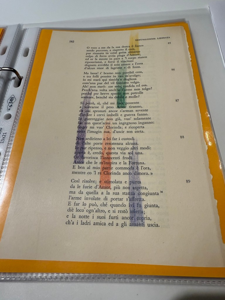 Il mio amico Daniele Monarca, ‘quello’ di Incipit, il generoso messere delle mostre istantanee, fugaci, immantinenti, effimere ma sempre intense, ha messo a disposizione di noi tutti i suoi ordinati quaderni ad anelli (cinesi), ventidue in tutto, che incasellano l’intimo dialogo trentennale col poeta de La Gerusalemme liberata.