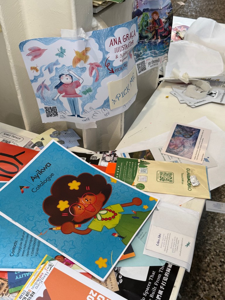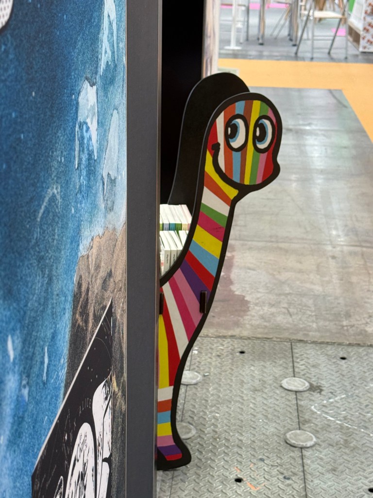 E qui un altro tipo di magia trova spazio e la creatività si moltiplica in mille forme d’espressione, di cui ci si può fare un’idea fin dall’ingresso al primo padiglione scivolando lungo il ‘muro del pianto’: un lunghissimo e sinuoso pannello dove illustratori e disegnatori appendono disegni e originali biglietti da visita con QR code per farsi notare dagli editori o dagli scrittori alla ricerca di collaboratori. L’obiettivo finale è riuscire a illustrare le storie destinate al pubblico di lettori (spesso per interposta persona) più ingordo del mondo: i bambini. E poi infinite mostre di illustrazioni e silent book (libri senza parole; alcuni, veri e propri gioielli capaci di condensare in poche tavole un racconto) da ogni parte del mondo. E libri pop-up e di poesie (chi ha detto che la poesia è appannaggio dei soli adulti?), e tanti tanti libri da tradurre… che aspettano chi, come me, fa di mestiere il traduttore, per essere diffusi nella nostra lingua, grazie a un passaggio delicato che richiede l’intermediazione umana (non ho nulla contro l’intelligenza artificiale purché non mi rubi il mestiere!) per i risultati migliori.